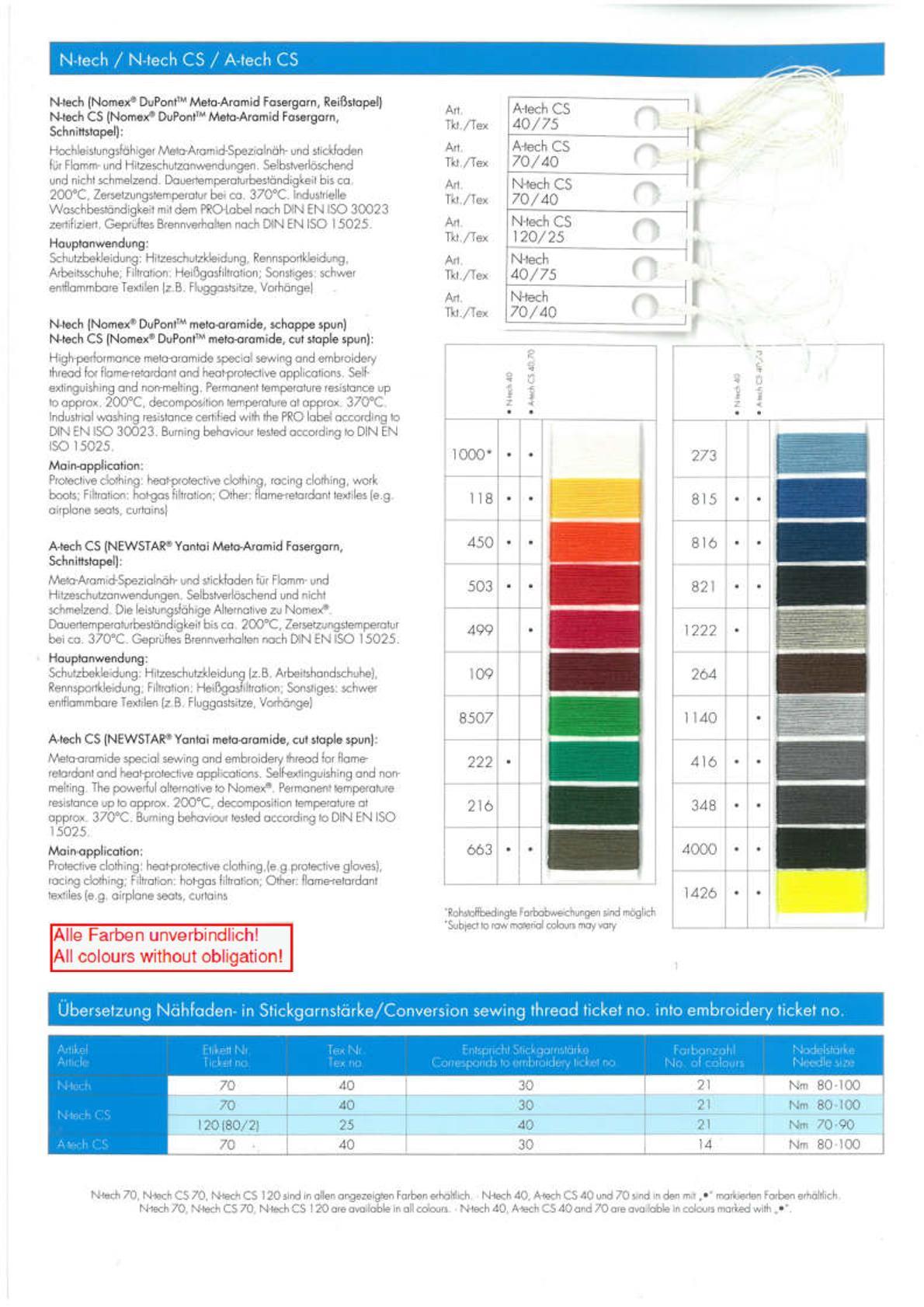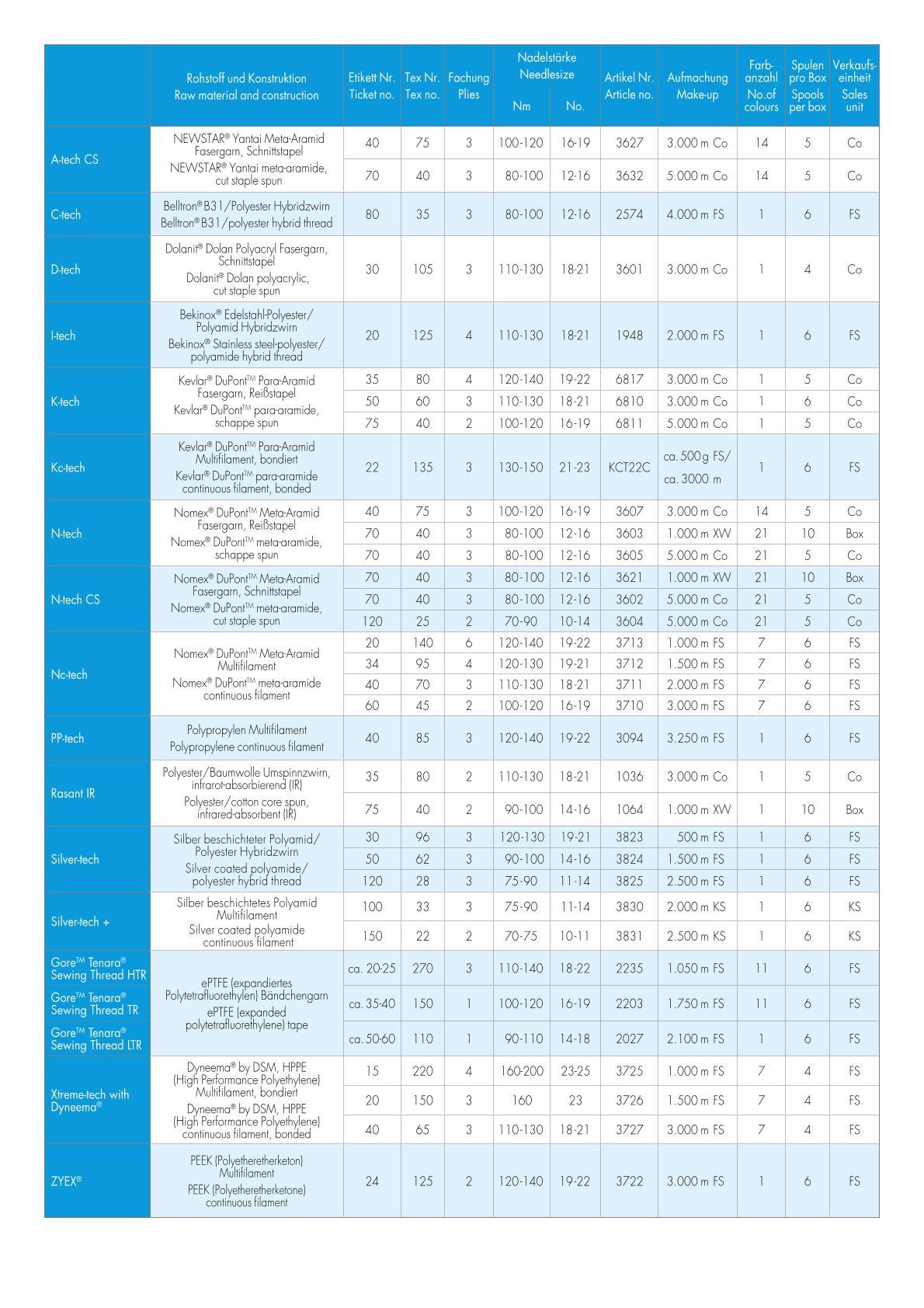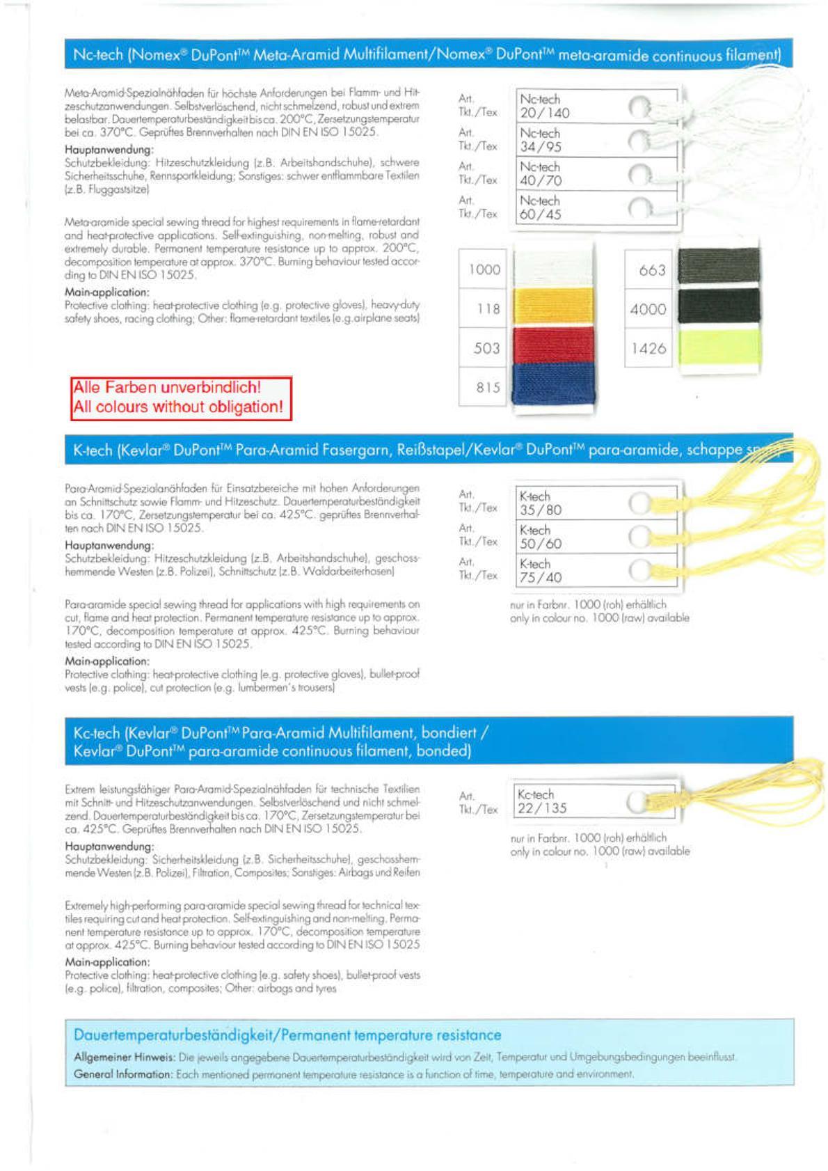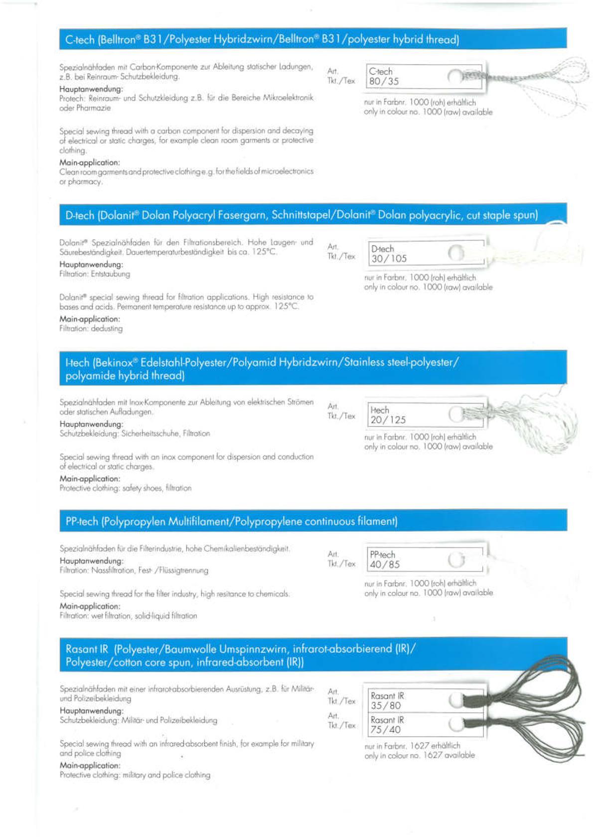Amann Farbkarte, Garn techX - Tenara