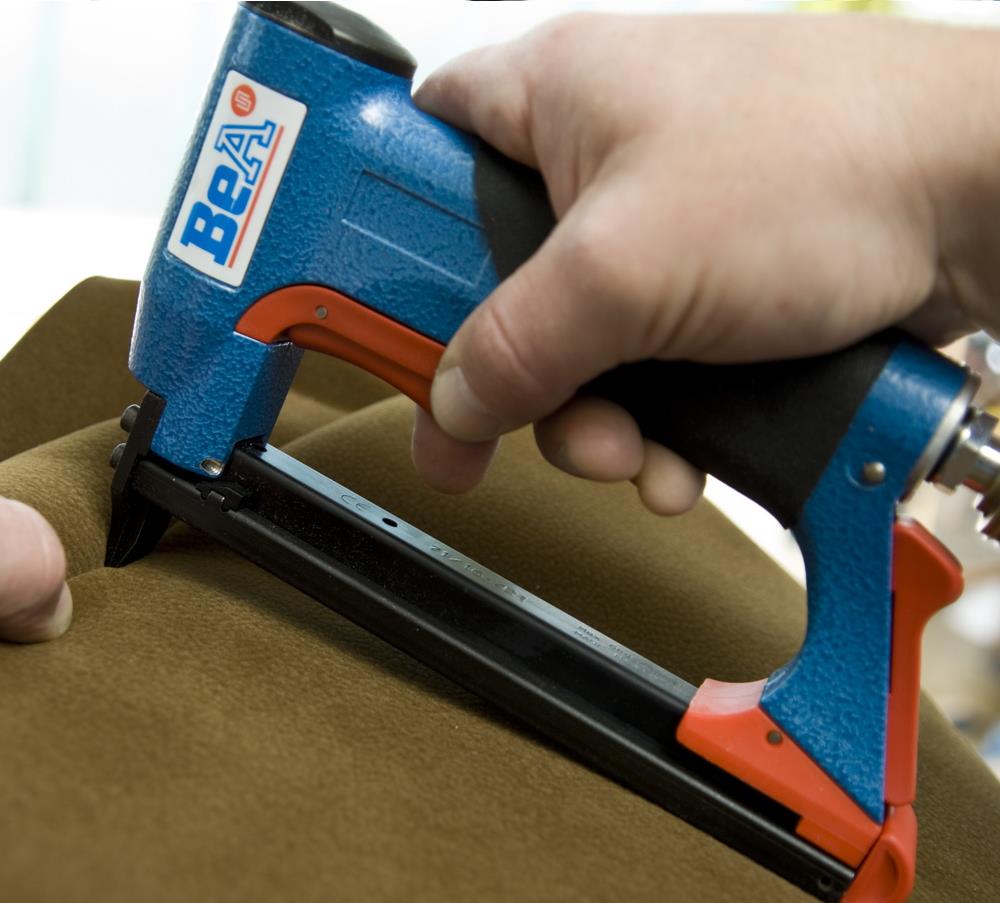 BeA Heftpistole 71/16-421 25mm Nase, Klammernagler, Druckluftgerät, Druckluft-Klammernagler für Heftklammern Typ 71 bis 16mm, mit 25mm Nase, für Polsterarbeiten, Möbel- und Gestellbau, Industrieverpackungen, Messe- und Montagebau, Tischlerei, Dekoration und Floristik. Eigenschaften: Integrierte Schalldämpfung, Magazinschnellöffnung, Unterladermagazin, Wartungsfreundlichkeit.