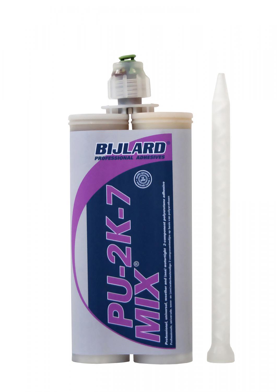 Bijlard PU-2K-7 Mix 2x200ml, PUR-Leim, 2x200g, Doppelkartusche, Sehr hochwertiger hochviskoser 2-Komponenten-Leim auf Polyurethanbasis. Hervorragend geeignet zum Verleimen von schwer verleimbaren Materialien bzw. Materialkombinationen und zur Schaffung von Verbindungen, die äußerst stark sein müssen oder extreme Umstände aushalten müssen. Gefahrenpiktogramme: GHS 07: Reizend, sensibilisierend, schädlich | GHS 08: Langfristige Gesundheidsgefahr
