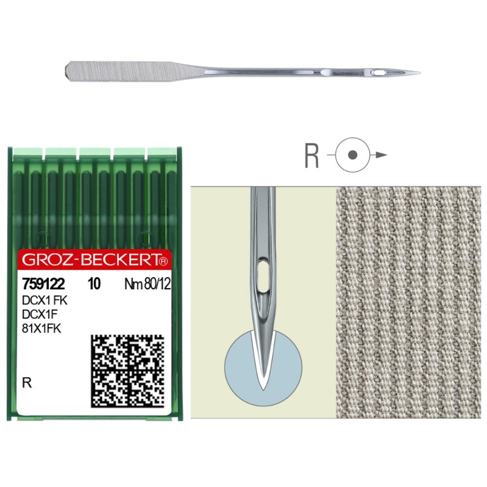 Groz-Beckert DCX1F/81X1F 80/12 R-runder Kopf, Beschichtung: Chrom, Packungsinhalt: 10 Overlock-Nadeln, Eignung: Webware, dünnes Leder, Hemden, Blusen, Hosen