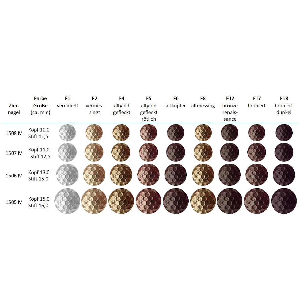 Hammerschlagnägel 1505M, F5 - altgold gefleckt rötlich (223), 250 Stück, Kopf 15,0 mm, Stift 16,0 mm, Polsternägel aus Metall mit Ornamentkopf, Honeycomb-Struktur, auch Möbelnägel oder Formnagel genannt, Kopfdurchmesser ca. 15 mm, Stiftlänge ca. 16 mm