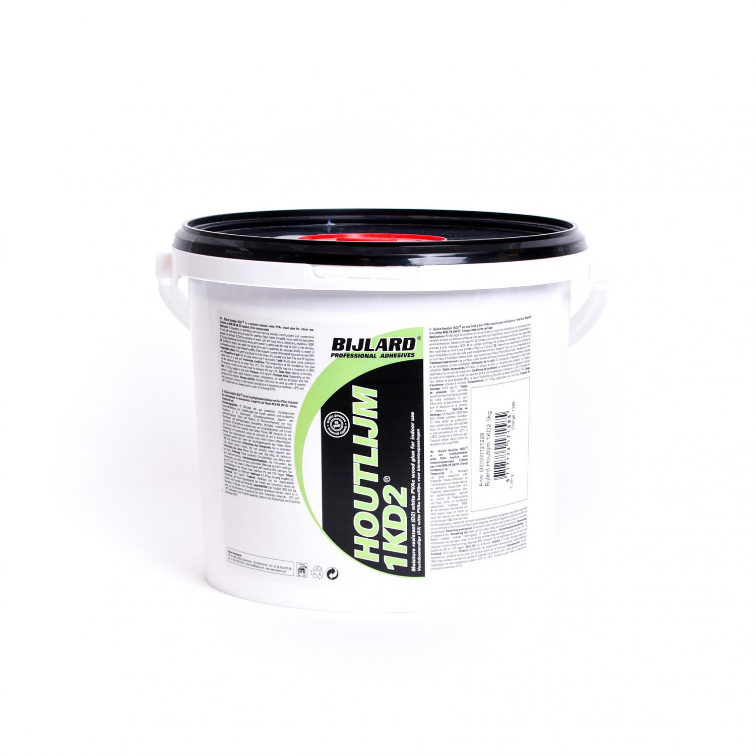 Bijlard Holzleim 1KD2, 10 kg A12, weiß, Hochwertiger weißer Holzleim D2 für den Innenbereich. Transparent nach Trocknung. Ungefüllt. Auf PVAc-Basis. Entspricht der Norm NEN-EN 204 D2. Öffnungszeit ± 8 Minuten. Presszeit 1-2 Stunden.