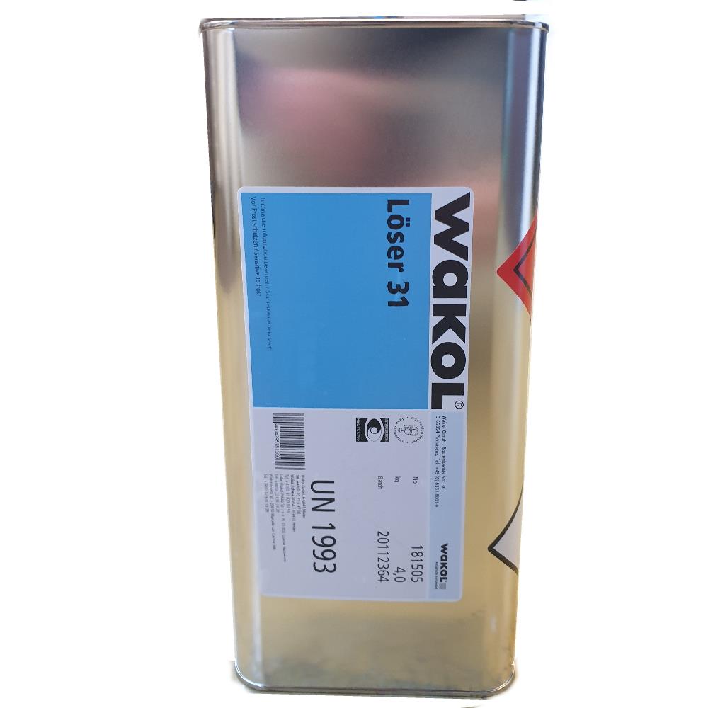 Wakol/Intercoll Verdünner/Löser 1815 (31), 4 kg, Gerätereiniger, Wakol Verdünner/Löser 31 ist als Universalverdünner und Reiniger für Polychloropren- und SBS-Klebstoffe einsetzbar. UN 1993 Entzündbarer flüssiger Stoff, n.a.g. (Siedegrenzbenzin, Aceton) 3.II.ADR Kanister aus Stahl - 3A1 WG037, UN 1993 Entzündbarer flüssiger Stoff, 3, II