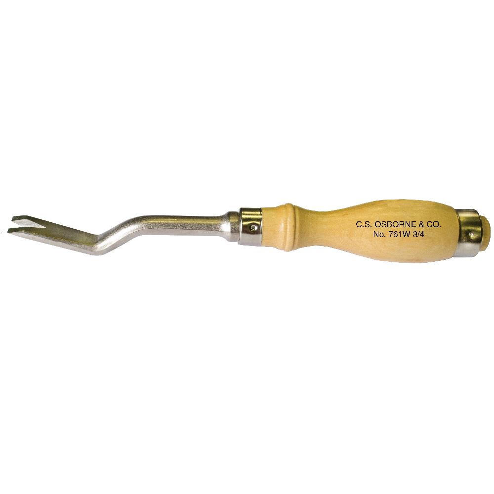 Nagelheber/Losschlageisen ca. 24 cm lang (Osborne 761W 3/4), mit Klaue und Holzgriff, Losschlageisen mit Klaue und Holzgriff, Länge ca. 24,5 cm, zum Abschlagen von Nägeln und Bespannungen. Klingenlänge ca. 12,5 cm. Schmiedestahl. Hartholzgriff mit verstärktem Schlagende. Klinge ist gebogen und hat auch eine Zwinge. Dieses Werkzeug hat einen großen Winkel zum Entfernen alter Reißnägel.