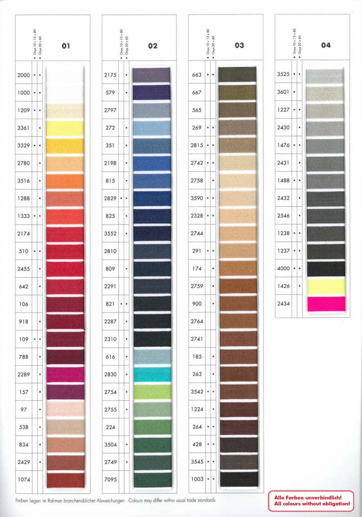 Onyx 20, ultrafest, 2.000 m (Tex 135), schwarz (4000), VE 1 Rolle, UV 6 Rollen, Qualität von Amann-Mettler aus Deutschland. Onyx, Polyamid 6.6 Multifilament, der ultrafeste Nähfaden für beanspruchte Nähte, für Schließ- und Absteppnähterobust, scheuerbeständig, belastbar, mit exzellenten Festigkeitswerten. Onyx Einsatzgebiete: Nadelstärke 120-160 Nm (19-23), Ziernähte bei Schuschäften, Taschen, Koffern, Lederbekleidung, für Steppnähte bei Gürtlen, bei Polstern und Schwergewebe