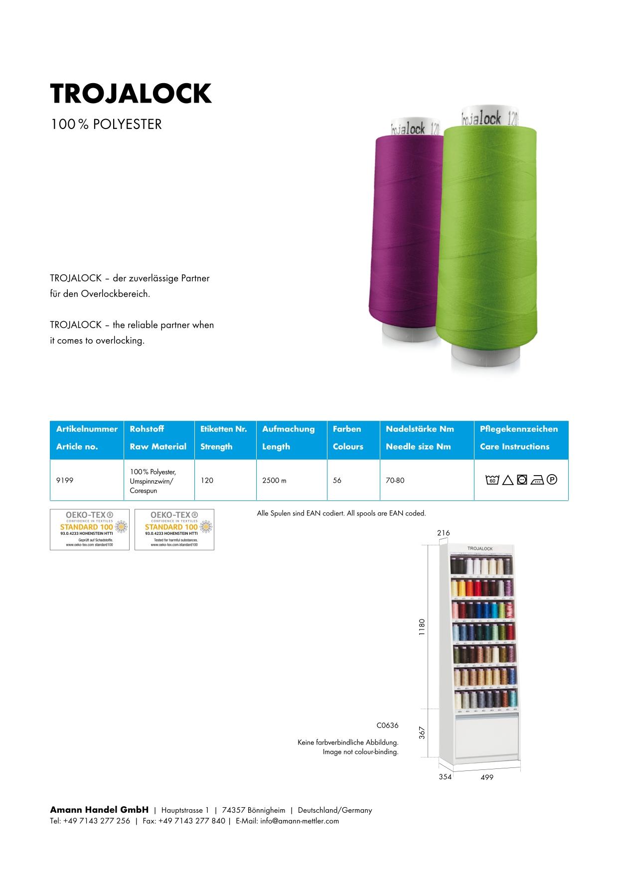 Trojalock, 2.500m, grau braun (1212), VE Karton 4 Rollen, Overlockgarn, Qualität von Amann-Mettler aus Deutschland. TROJALOCK – der zuverlässige Partner für den Overlockbereich. Overlockgarn, stark mit der richtigen Dehnung, sehr gute Vernähbarkeit, sowie schrumpffrei und pflegeleicht. Nadelstärke 70-80 Nm