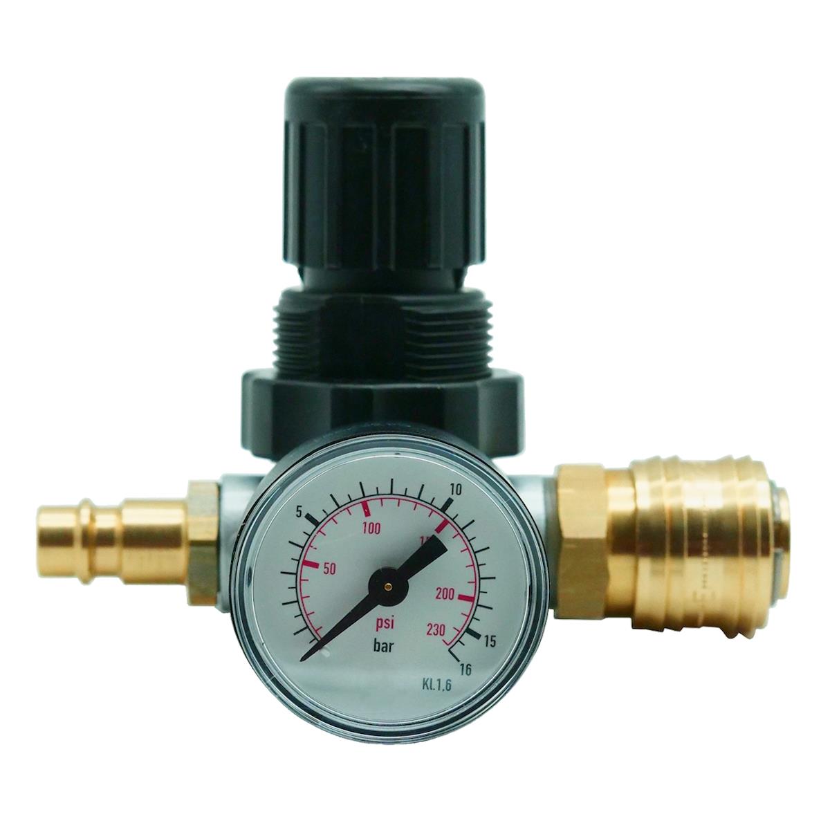 Aufsteckdruckminderer mit Kupplung und Tülle mit Anzeige für Druckluftgeräte, VE 1 Stück