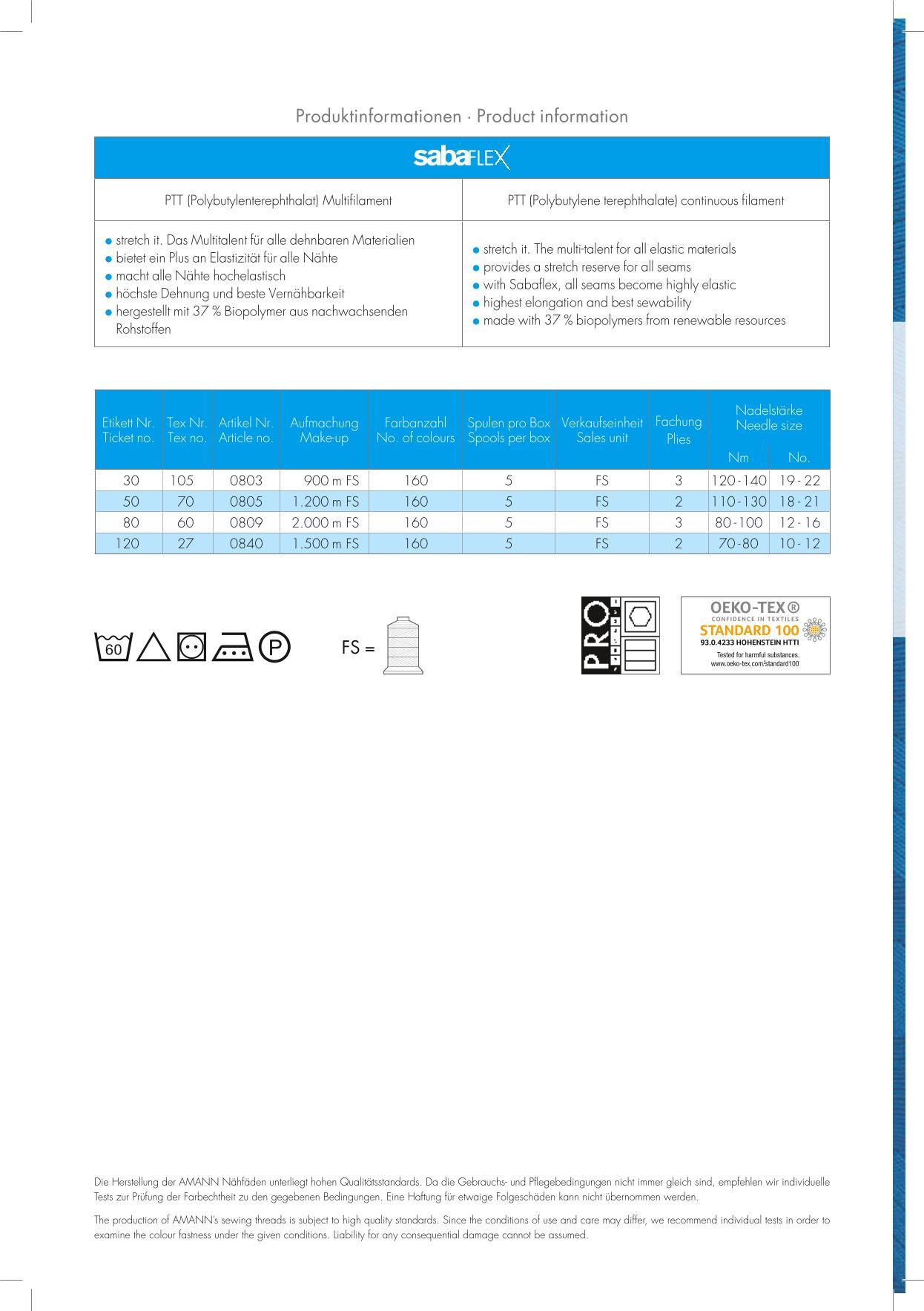 SabaFlex 120, 1.500 m (Tex 27), bordeaux (0105), VE 1 Rolle(n), UV 5 Rollen , Nadelstärke 70-80 Nm, No. 10-12, Qualität von Amann-Mettler aus Deutschland. PTT (Polytrimethylenterephthalat) Multifilament, PRO-Label Zertifizierung. Das Multitalent für alle dehnbaren Materialienbietet ein Plus an Elastizität für alle Nähtemacht alle Nähte hochelastischhöchste Dehnung und beste Vernähbarkeithergestellt mit 37 % Biopolymer aus nachwachsenden Rohstoffen
