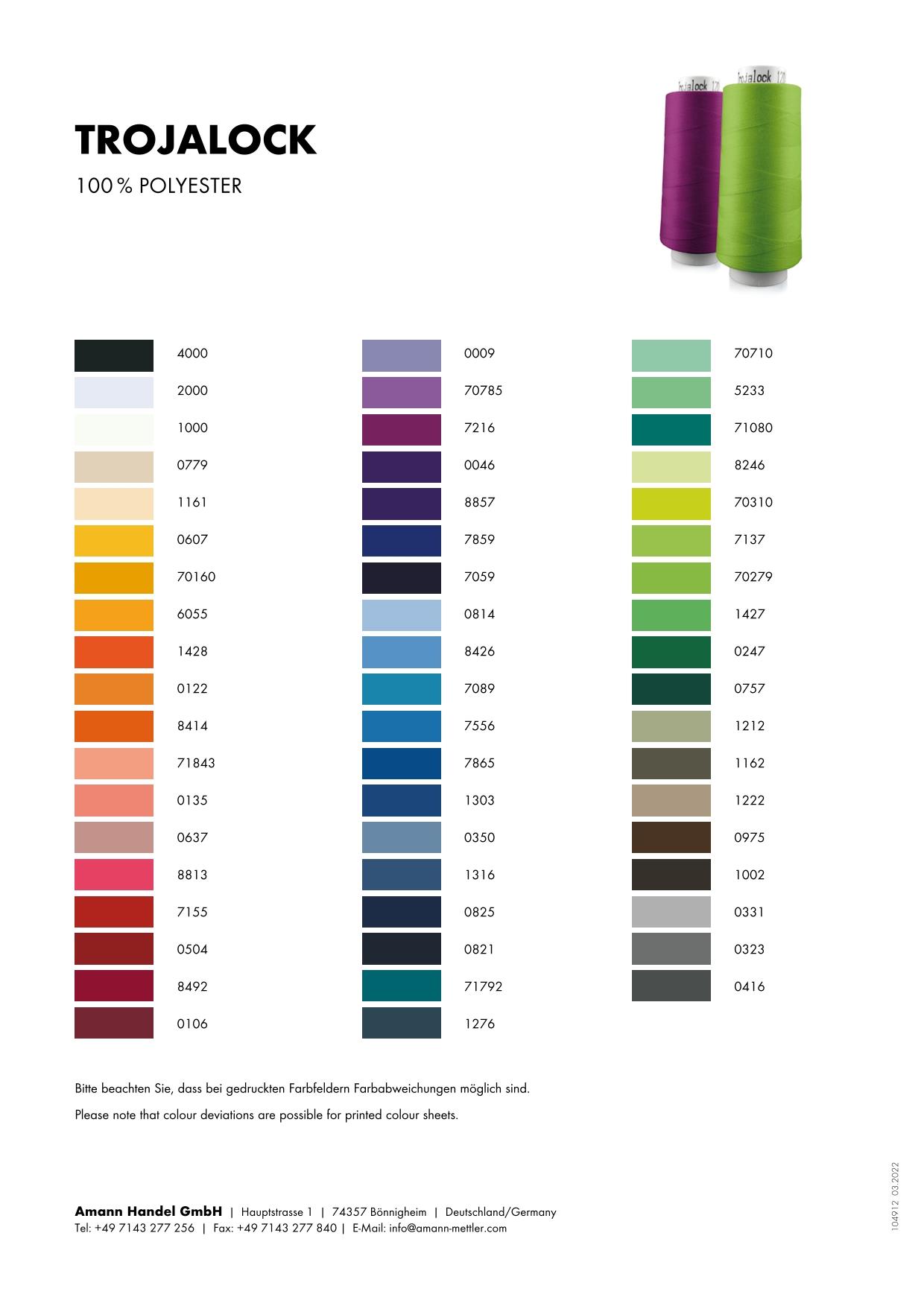 Trojalock, 2.500m, grau braun (1212), VE Karton 4 Rollen, Overlockgarn, Qualität von Amann-Mettler aus Deutschland. TROJALOCK – der zuverlässige Partner für den Overlockbereich. Overlockgarn, stark mit der richtigen Dehnung, sehr gute Vernähbarkeit, sowie schrumpffrei und pflegeleicht. Nadelstärke 70-80 Nm